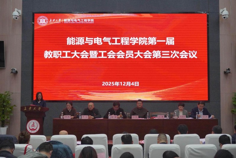 12月4日晚,能源与电气工程学院第一届教职工大会暨工会会员第三次会议在北校区师生服务中心二楼第二报告厅召开。校工会主席王卫、能电学院全体领导班子成员、学院工会主席及全体教职工参加会议,大会由能电学院党委书记王艳主持。