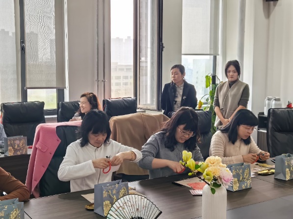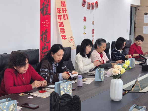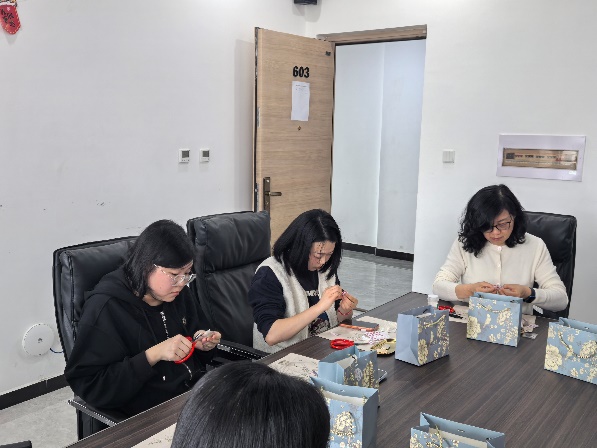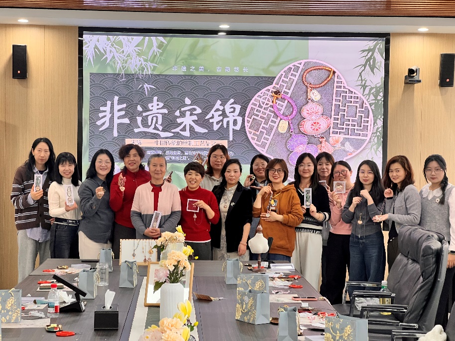 随后,在老师的指导下,大家动手体验宋锦制作过程。从选材、构图到细致的手工制作,每一个环节都凝聚着传统工艺的匠心。女教职工们认真操作、相互交流,在轻松愉快的氛围中完成了一件件精美的宋锦作品。活动现场气氛热烈,欢声笑语不断。