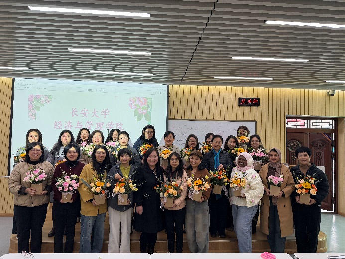 3月5日中午,在第116个“三八”国际劳动妇女节来临之际,长安大学经济与管理学院工会举办“花漾巾帼 芳华绽放”主题花艺活动,致敬全院女教工,为其舒缓压力、陶冶情操。学院党委书记黄喜峰出席活动并致辞,党委副书记龚少博及学院女教师、留学生代表等近三十人参加活动。