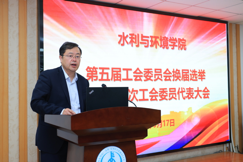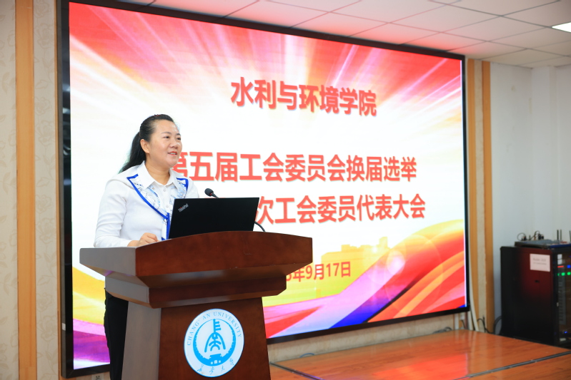 水环学院党委副书记刘扬传达水环学院《关于长安大学第五届工会委员会换届工作》安排和要求。随后,与会代表依照合理合规程序选举水利与环境学院第五届工会委员会委员:王疆霞、窦妍、杨文娟、杨志洲、李金洋。