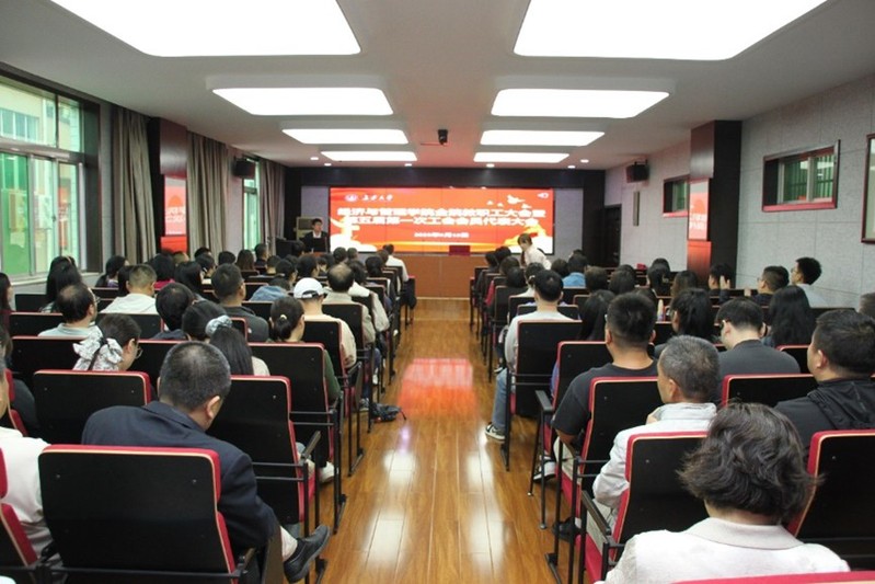 9月18日,经济与管理学院全院教职工大会暨第五届第一次工会会员代表大会在学院四楼报告厅隆重召开。校工会副主席杨利锋、学院领导班子成员、工会会员代表120人参加会议。大会由学院党委副书记徐永超主持。