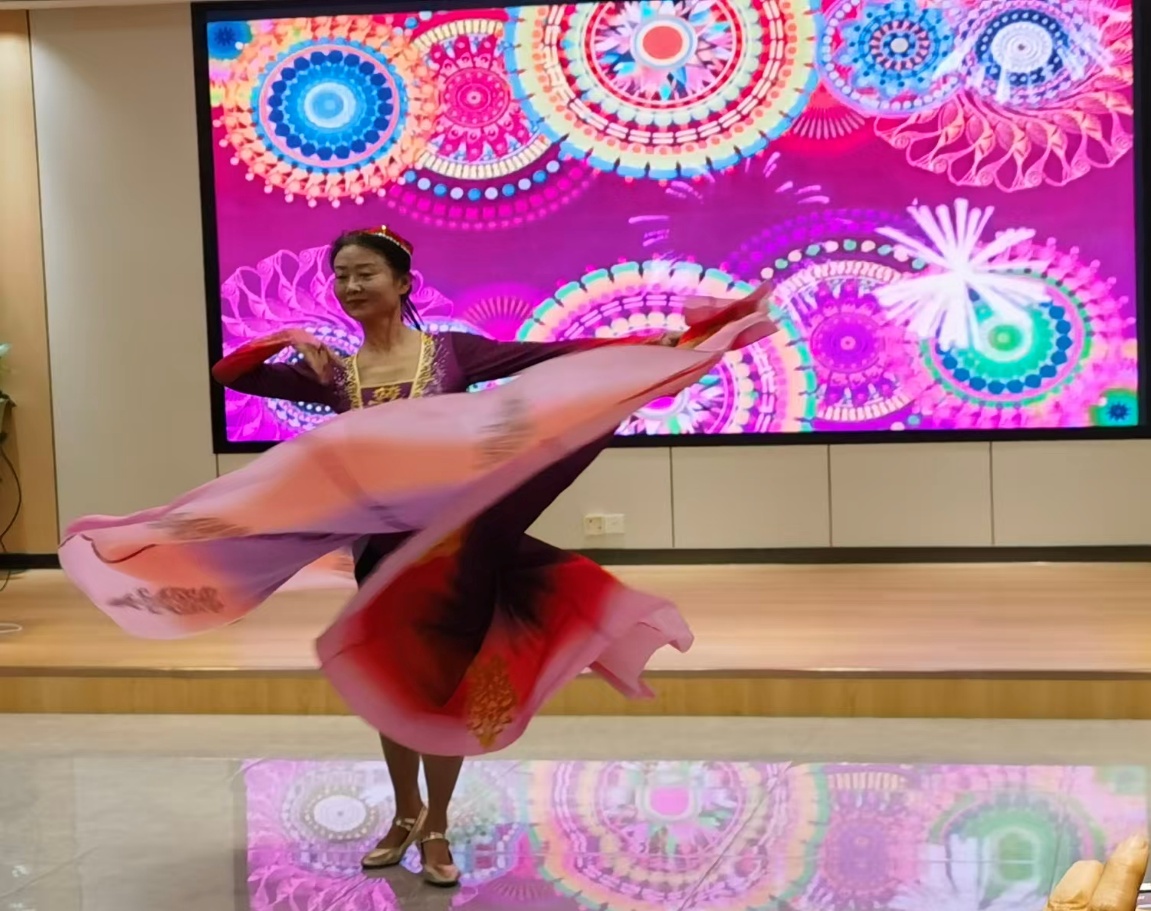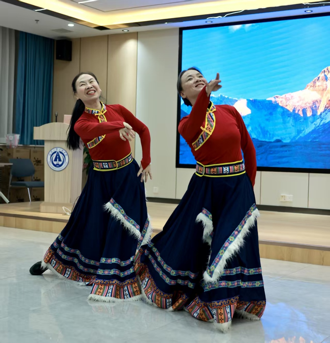 笙歌起处,盛宴开篇。联欢会在非洲鼓《月亮照山川》的雄浑韵律中拉开帷幕,鼓点深沉如大山宁静,节奏明快似流水奔涌,瞬间点燃全场热忱。紧随其后的舞蹈《戏文说》,将古典雅韵与现代舞姿相融,水袖翻飞间流转着千年文脉,眼波流转中诉说着戏曲风情,尽显中华传统文化的博大精深。