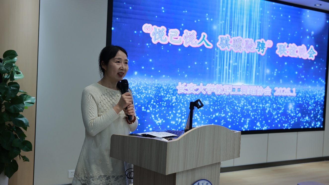 校工会主席王卫老师、副主席杨利峰老师、副主席马艳梅老师,外语学院团委书记杨文佳老师应邀莅临盛会,与老师们共襄盛举、同贺新春。王卫主席登台致贺,言辞温润而恳切,既为全体舞友送上了“骐骥奔腾添福运,春和景明纳祥光”的新春祝福,更肯定了舞蹈协会在丰富教职工业余文化生活、凝聚校园人文气韵中的重要作用,勉励协会在新的一年里继续深耕艺术沃土,绽放更绚丽的光彩。舞蹈协会会长白雅老师则深情回顾了过往一年的耕耘之路,从日常排练的点滴积累到各类活动的精彩呈现,字字句句皆饱含对协会的赤诚与对伙伴们的感念,更承诺新岁将矢志不渝,带领协会勇毅前行,书写更多艺术华章。