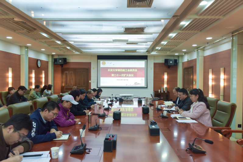 2026年4月9日下午,长安大学第四届工会委员会第二十一次扩大会议在北校区北辰楼会议中心第二会议室召开。第四届工会委员会委员,分会主席参加了会议。会议由工会主席王卫主持。